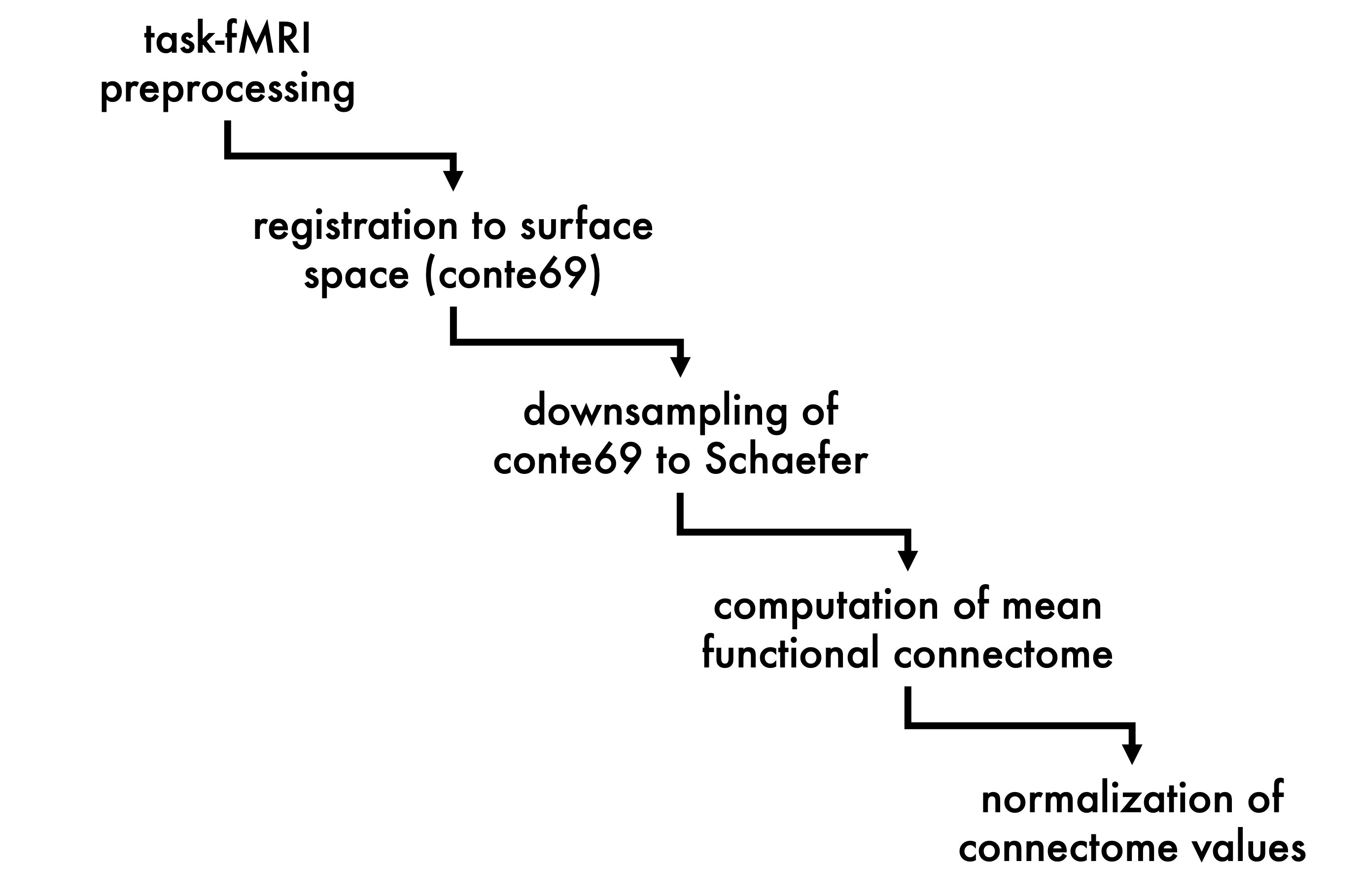 So the question now is: how did I actually derive subject-specific functional connectomes from raw task-based MRI acquisitions? The following is a step-by-step walkthrough that will help clarify the overall procedure: