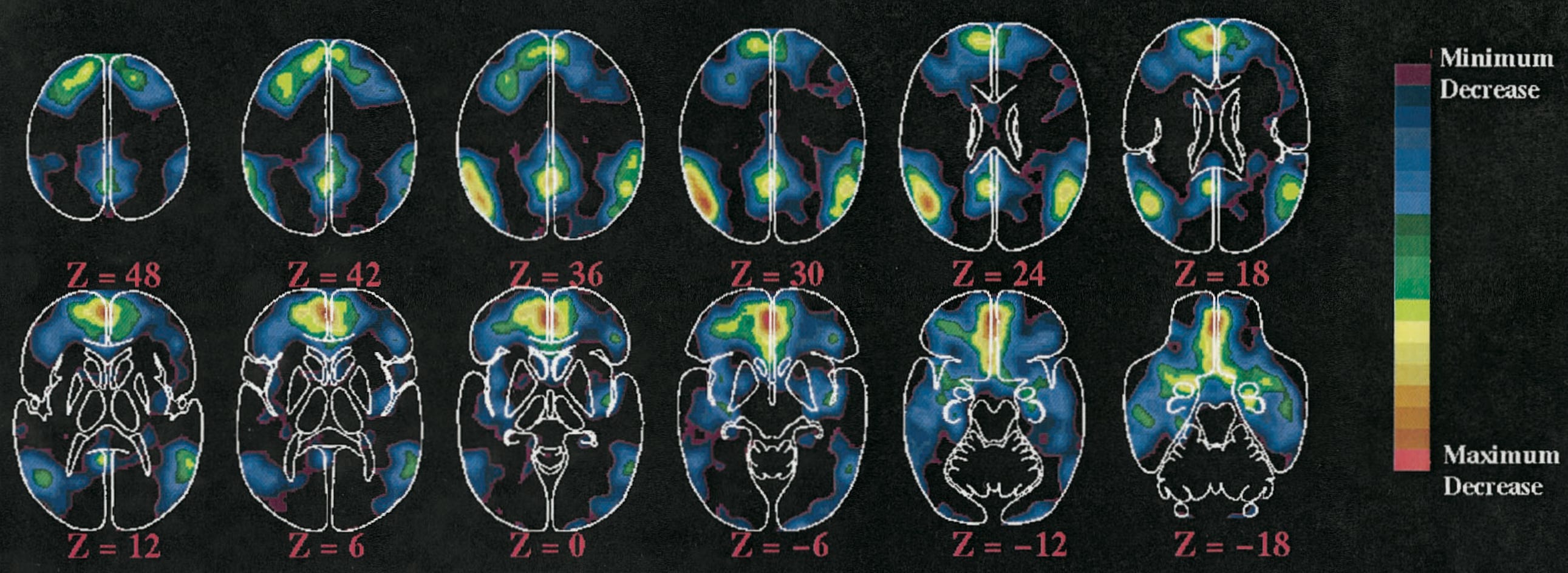 ![Figure 3. [Raichle et al. (2001)] “Regions of the brain regularly observed to decrease their activity during attention-demanding cognitive tasks shown in sagittal projection (Upper) as compared with the blood flow of the brain while the subject rests quietly but is awake with eyes closed (Lower).” Figure 3. [Raichle et al. (2001)] “Regions of the brain regularly observed to decrease their activity during attention-demanding cognitive tasks shown in sagittal projection (Upper) as compared with the blood flow of the brain while the subject rests quietly but is awake with eyes closed (Lower).”](https://substackcdn.com/image/fetch/$s_!ElO8!,w_1456,c_limit,f_auto,q_auto:good,fl_progressive:steep/https%3A%2F%2Fsubstack-post-media.s3.amazonaws.com%2Fpublic%2Fimages%2F036eb3c8-c779-4bff-b544-ebd478e8ac26_2508x906.png)