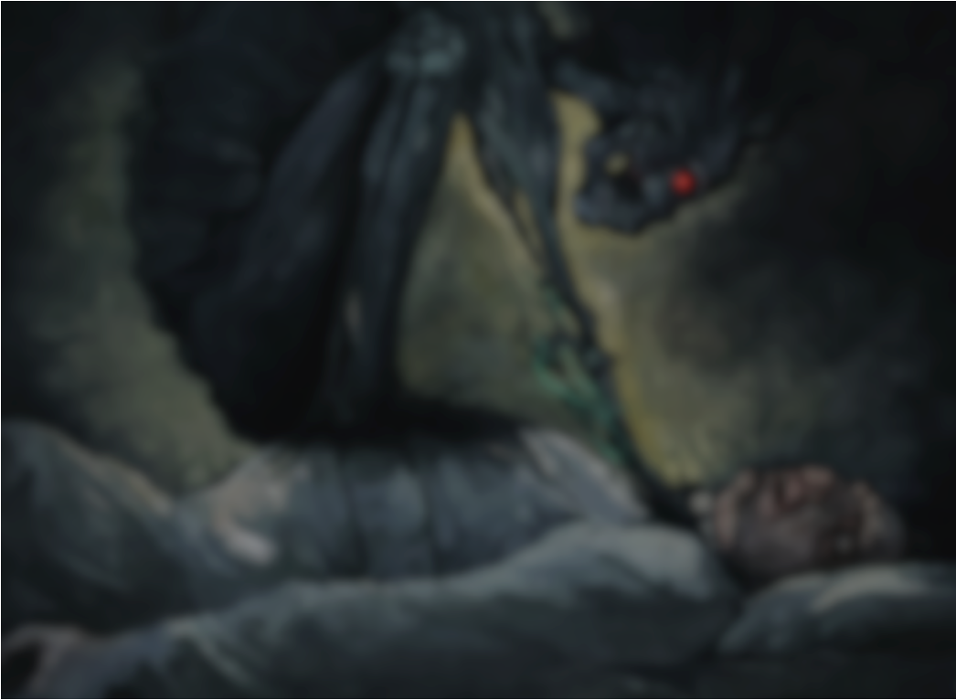 J’ai l’impression d’être paralysé; je ne peux guerre ni tourner la tête, ni soulever le bras. Tant qu’à mes jambes, je ne sais même pas si elles sont toujours là, attachées à ma hanche ou pas! À vrai dire, j’ai de la peine à percevoir mon entourage. Il y a une présence nébuleuse qui m’engloutit partiellement, ne me laissant qu’entrevoir un torse nu amaigri et des bras émaciés; pour tout ce qui est du nombril et des parties distales, mon champ visuel s’efface graduellement dans un infini obscur.