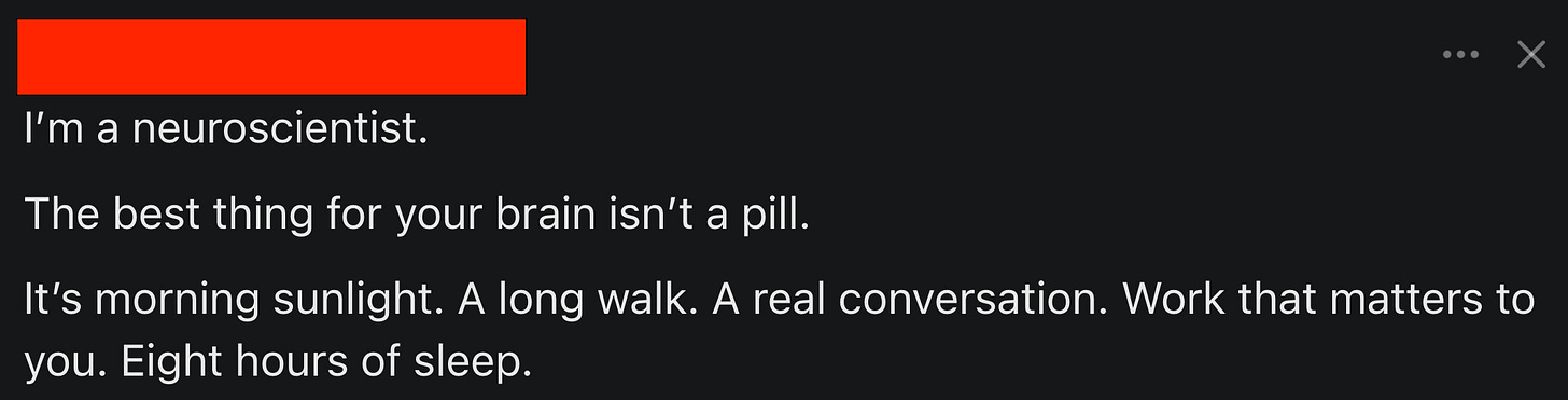 Let’s turn our attention to another premium “neuroscience” platform on Substack and see what other golden nuggets we can excavate.